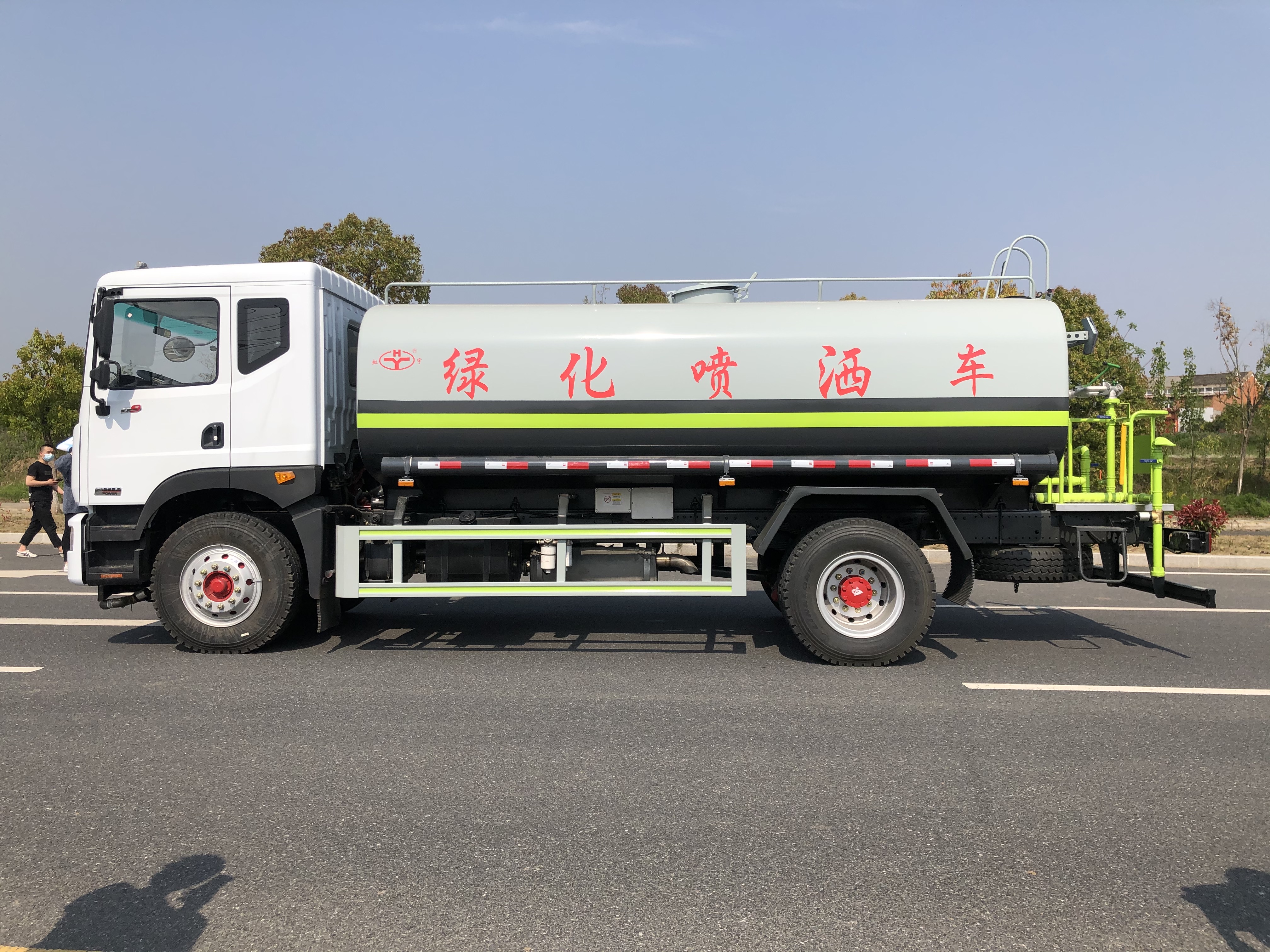 這款性價(jià)比超高的12噸灑水車采用東風(fēng)多利卡D9駕駛室底盤,外寬2315mm,排半,玉柴165馬力(YCY30165-60)國六發(fā)動(dòng)機(jī),121KW,法士特8檔變速箱,9.00R20鋼絲胎,3.9/8噸德納前/后橋,250mm寬大梁,帶原廠空調(diào)、電動(dòng)窗、ABS,行駛記錄儀。24V雙電瓶,斷氣剎,動(dòng)轉(zhuǎn),排氣制動(dòng)。