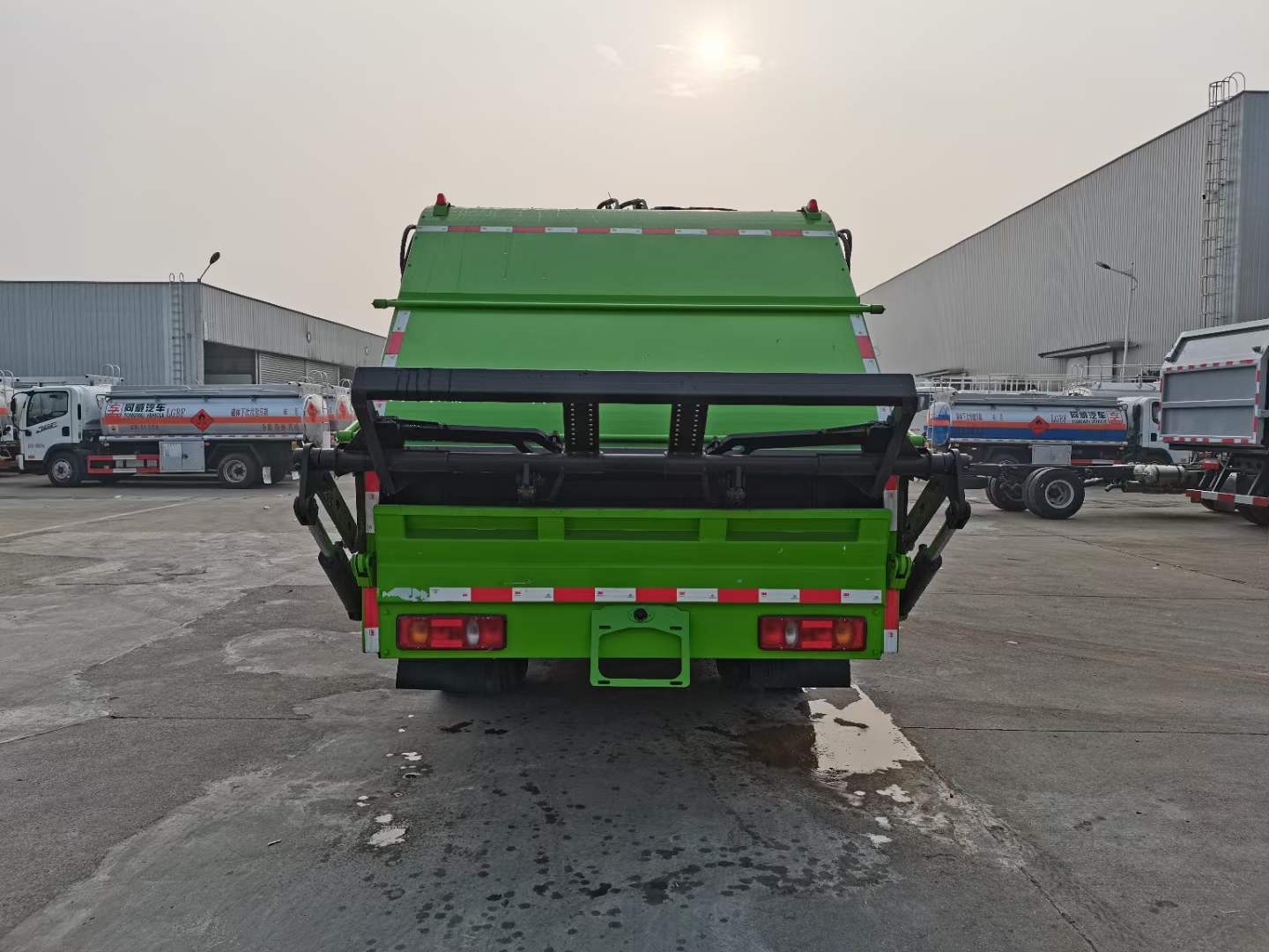 上裝配置:1,新款弧形箱體,增加箱體容積,整車更美觀,箱體為碳鋼制作,底箱及填充器采用加厚鋼板,耐腐蝕使用壽命長,一層油漆噴涂處理。2,裝載循環時間=25S;垃圾排出時間≤25S;填料提升角度≥95°,壓縮比例為1/3-1/2,一裝部分具備雙向壓縮和蠕動壓縮功能帶。3,新款結構加大填充器,手電一體操作模式,帶駕駛室操作,帶駕駛室一鍵卸料功能,3308軸距以上配遠距離遙控器,尾部裝置可以選裝垃圾翻轉斗,掛桶翻轉板或者大落地斗。4,CAN總線控制方式,光電開關加延時雙系統控制,降低故障率,方便維修。5,帶夜間照明裝置,6方)及以上車型帶雙污水箱,污水箱排水球閥和排水蓋,增加排水管,防止濺水,人性化設計。6,標配選用:威森搏樂油缸,威森搏樂多路閥,3308軸距以上配備壓實閥(背壓閥),所有車型標配單泵。5000軸距、后八輪車型標標配雙聯泵,大油量多路閥。