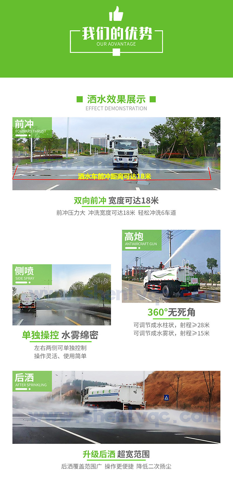 前沖灑水寬度:前沖可達(dá)15米
