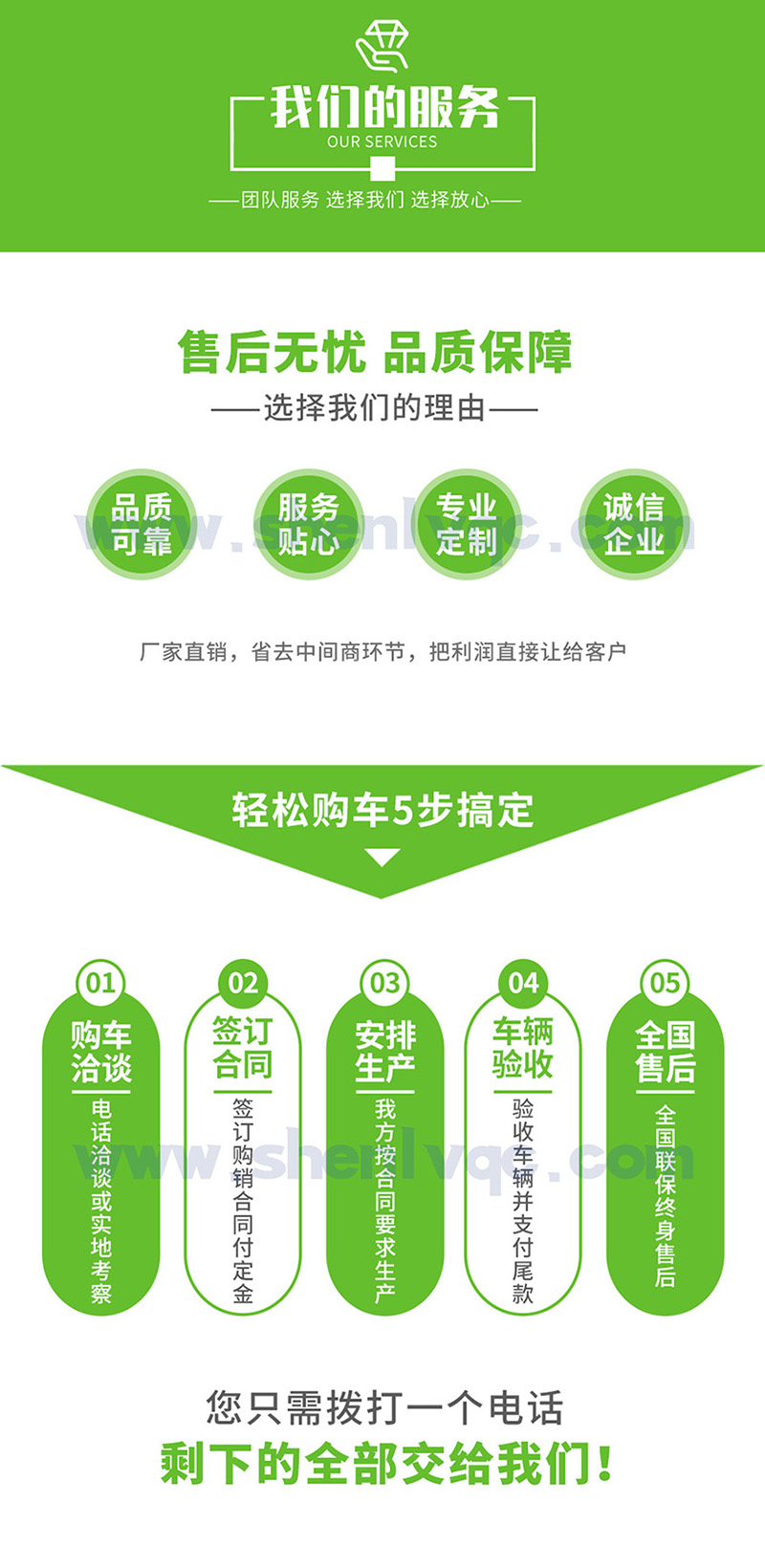 感謝您使用我公司生產(chǎn)的“神綠牌”各型專用汽車,為了更好的提供優(yōu)質(zhì)的售后服務(wù),我公司現(xiàn)鄭重向您作出如下承諾: